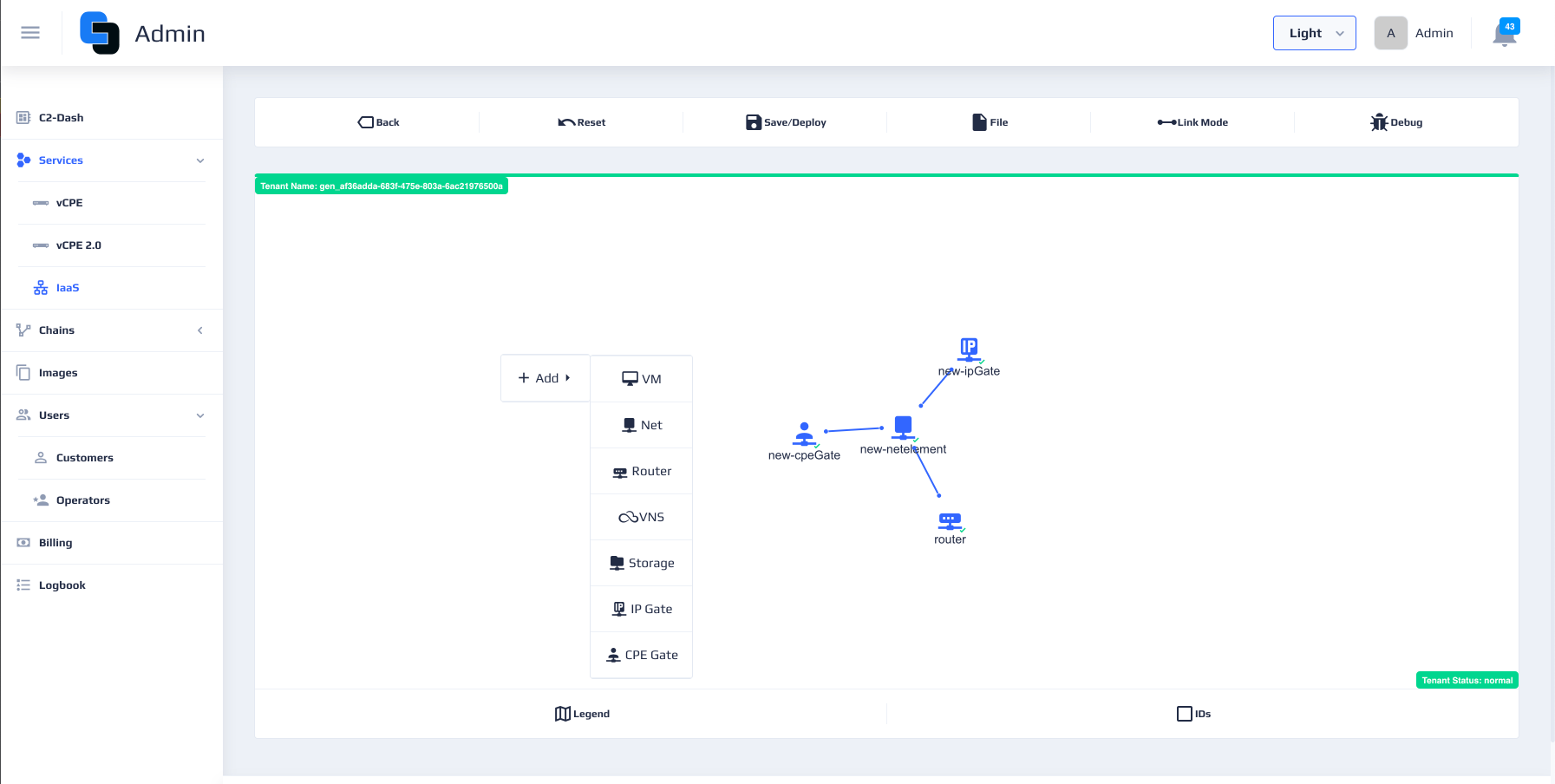 развертывание и свертывание инфраструктуры сервиса vCPE, просмотр топологии,